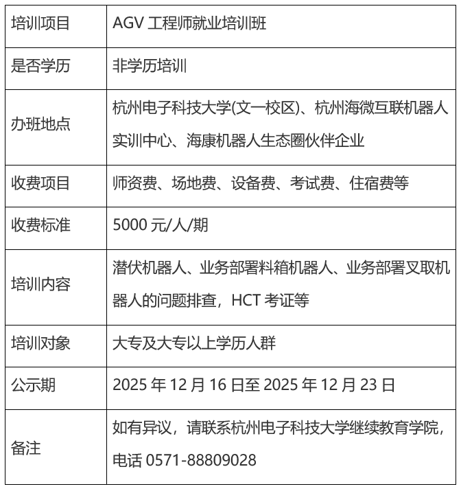 收费公示-AGV工程师就业培训班