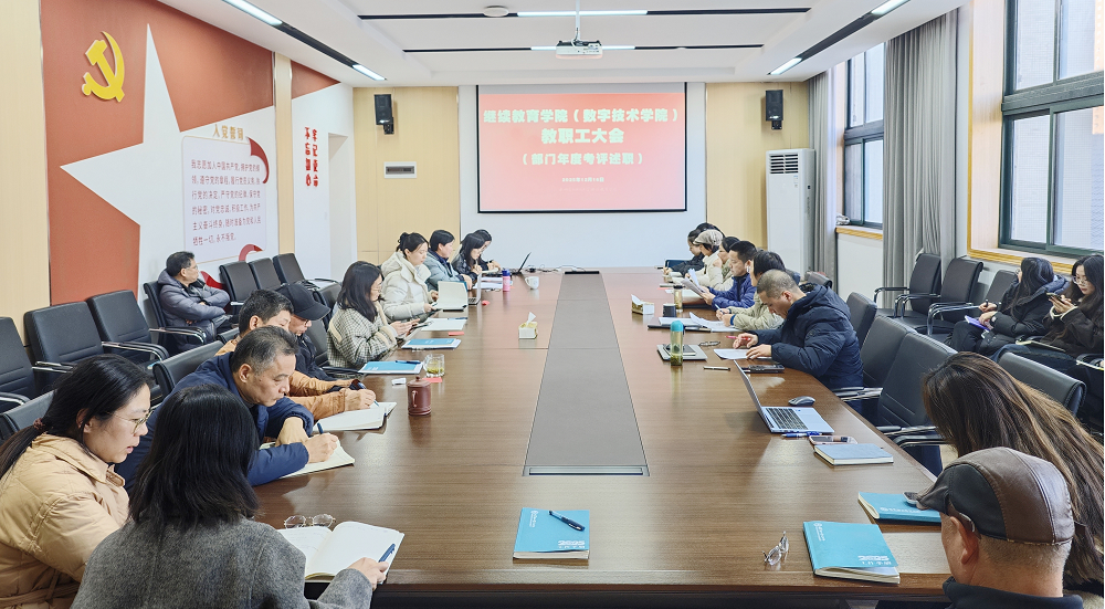 12月16日,继续教育学院召开2025年度部门述职大会,学院党政领导班子及全体教职员工出席大会,各部门负责人代表部门进行现场述职,会议由学院党委书记张云主持。