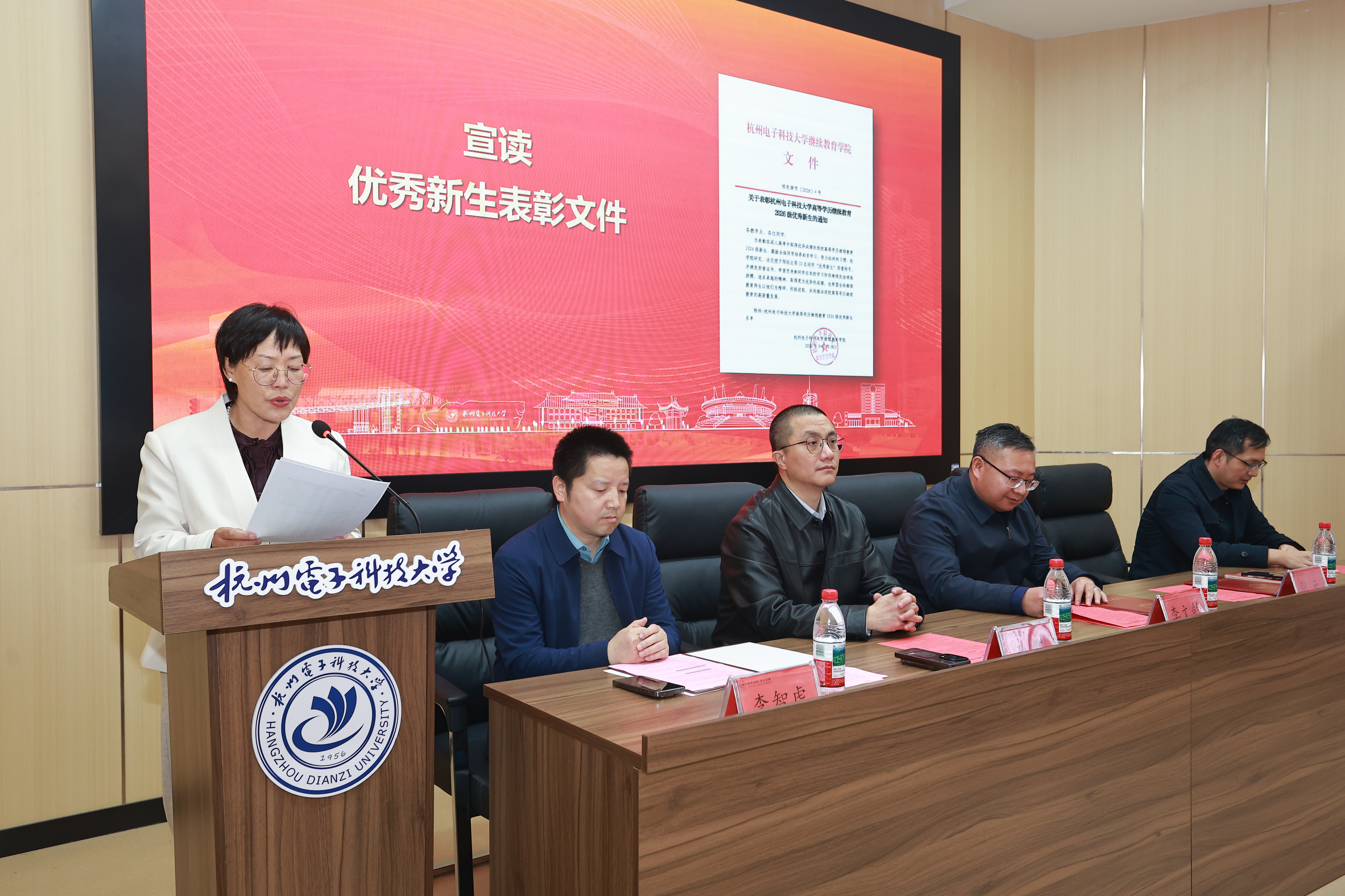 继续教育学院党委书记张云宣读了优秀新生表彰文件,校党委委员、副校长李文钧为优秀新生代表颁发了荣誉证书,鼓励他们珍惜荣誉、再接再厉、勤学不辍,充分发挥模范带头作用。