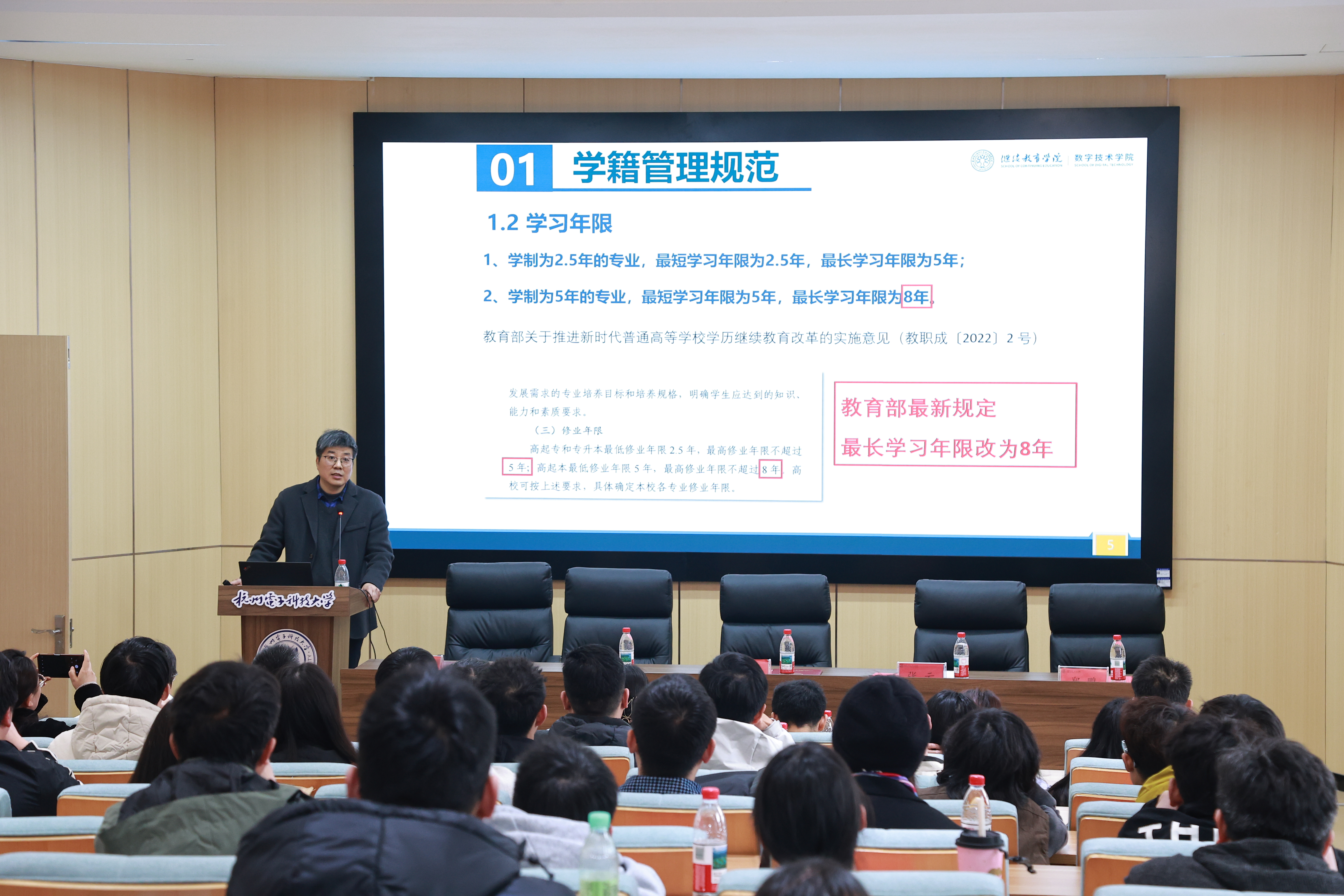 开学典礼圆满结束后,随即进入入学教育环节。继续教育学院学历部主任钱胜为新生系统讲解了高等学历继续教育的教学模式、考核方式、学籍管理以及相关注意事项,并就新生学习规划提出了具有指导性的建议,帮助大家明确目标、快速熟悉学习流程;培训部主任郑明娜解读了数字经济发展趋势与数字技术工程师项目,让新生们明晰了行业发展和技能提升;办公室主任齐敏敏讲解了缴费程序和注意事项,提供了细致的后勤服务指引;学工部主任郭小明围绕学生管理和思政教育展开介绍,引导新生树立正确的价值观,规范自身言行,尽快适应大学生活。